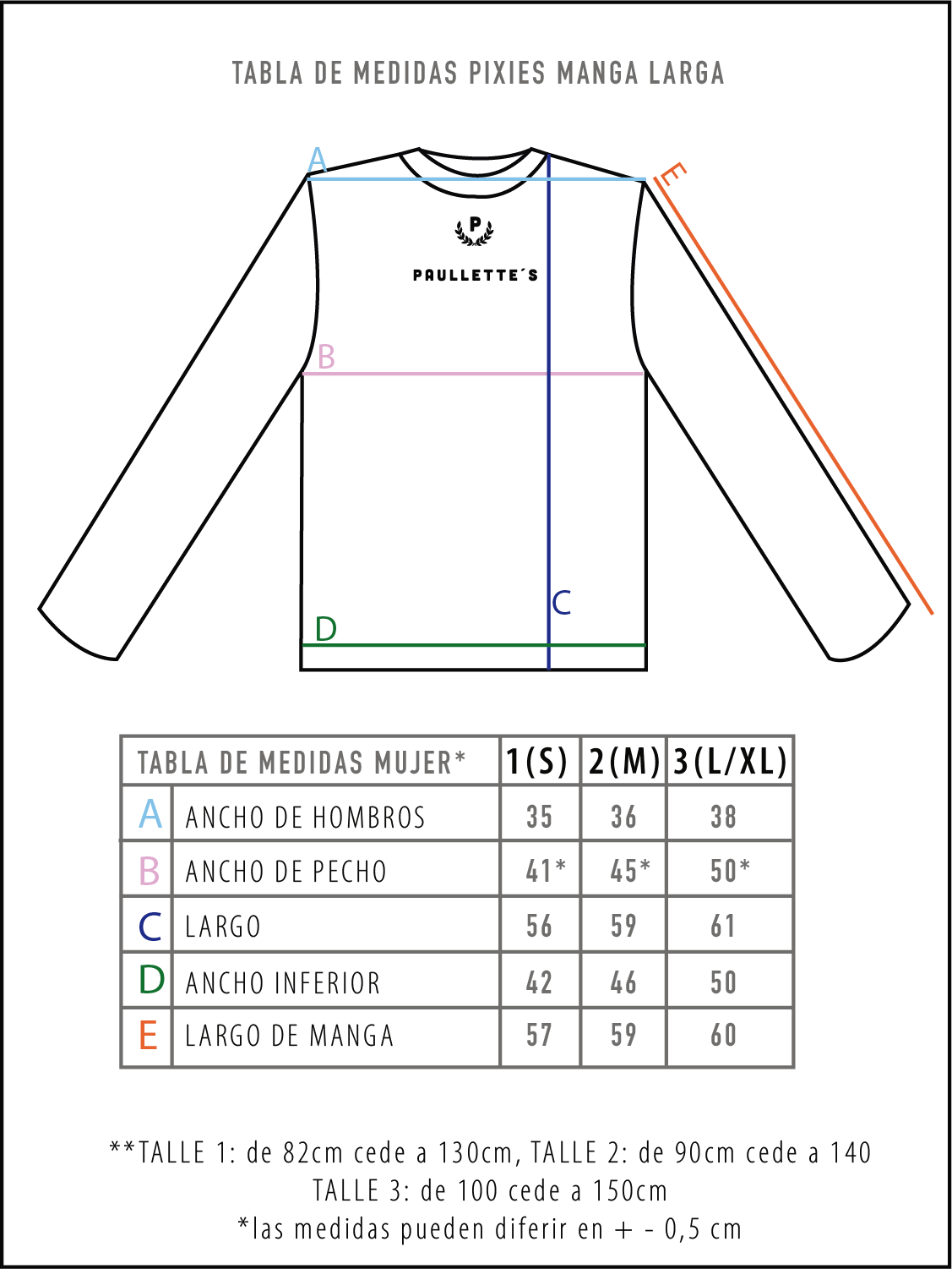 La tabla de medidas la encontrás más abajo