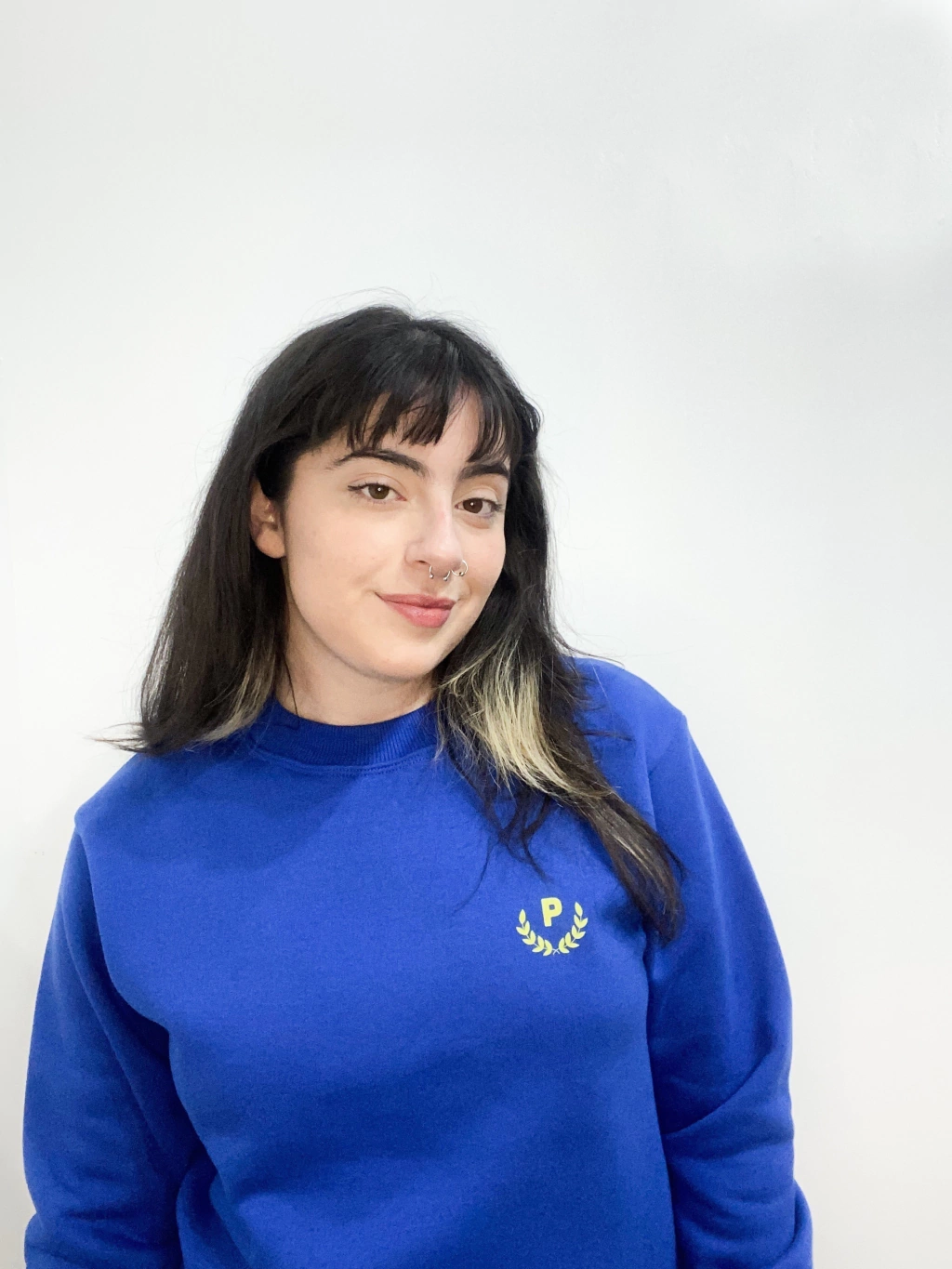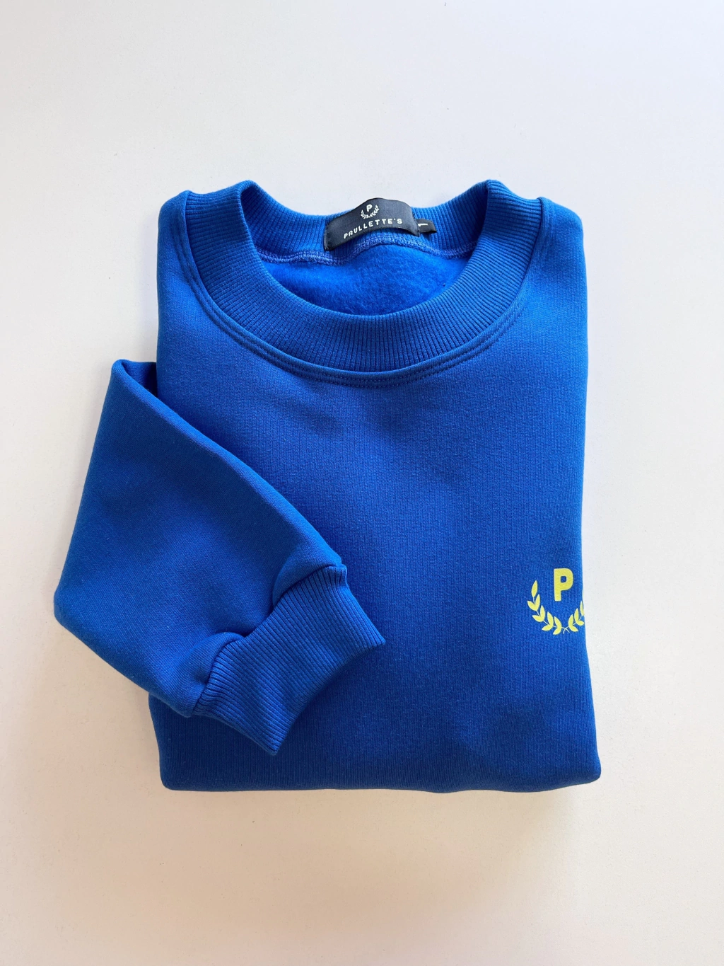Buzo de frisa de algodón color azul Francia, logo amarillo