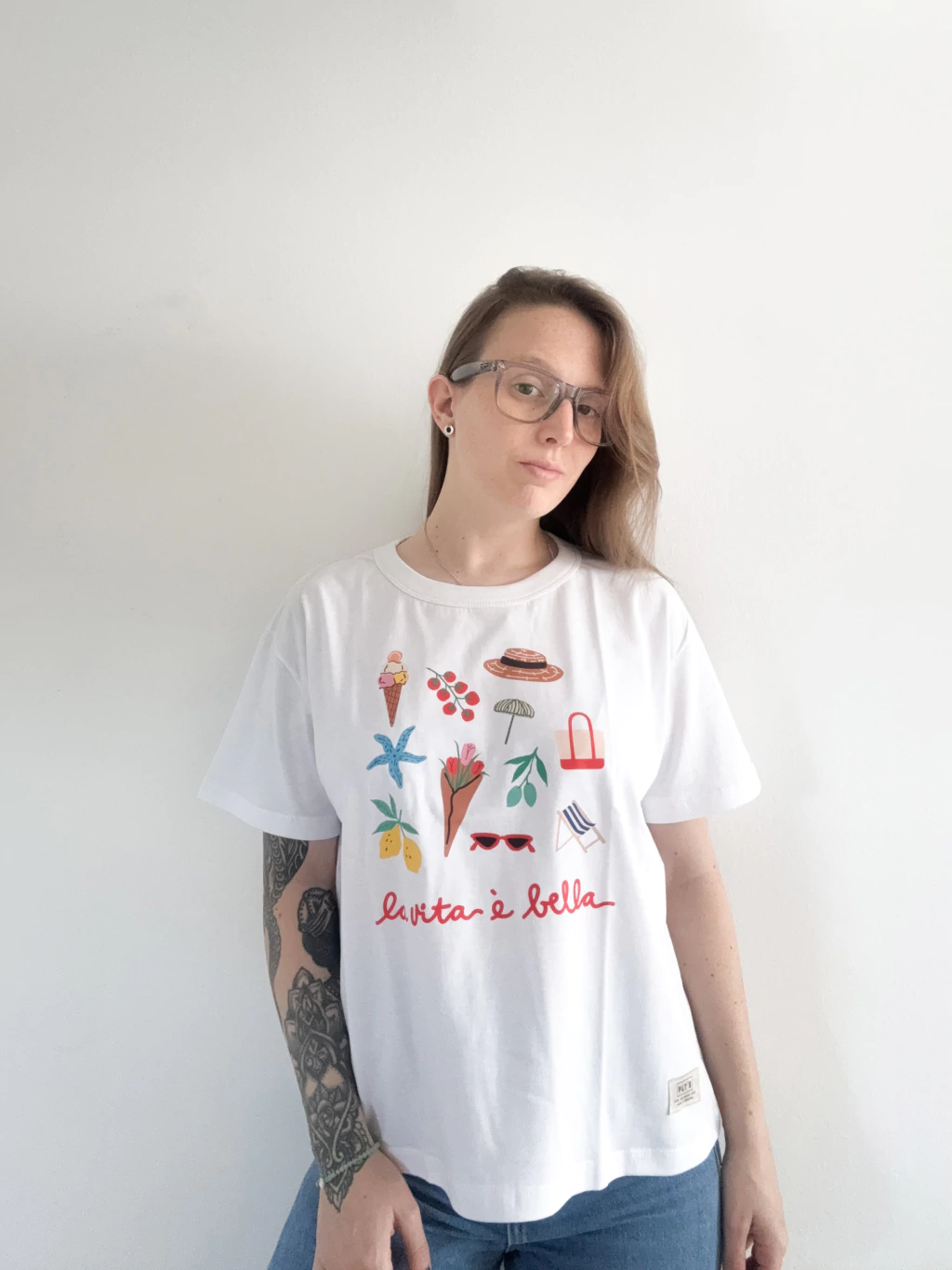 Trabajamos con algodón 100%, como toda fibra natural puede tomar hasta un 2% de largo